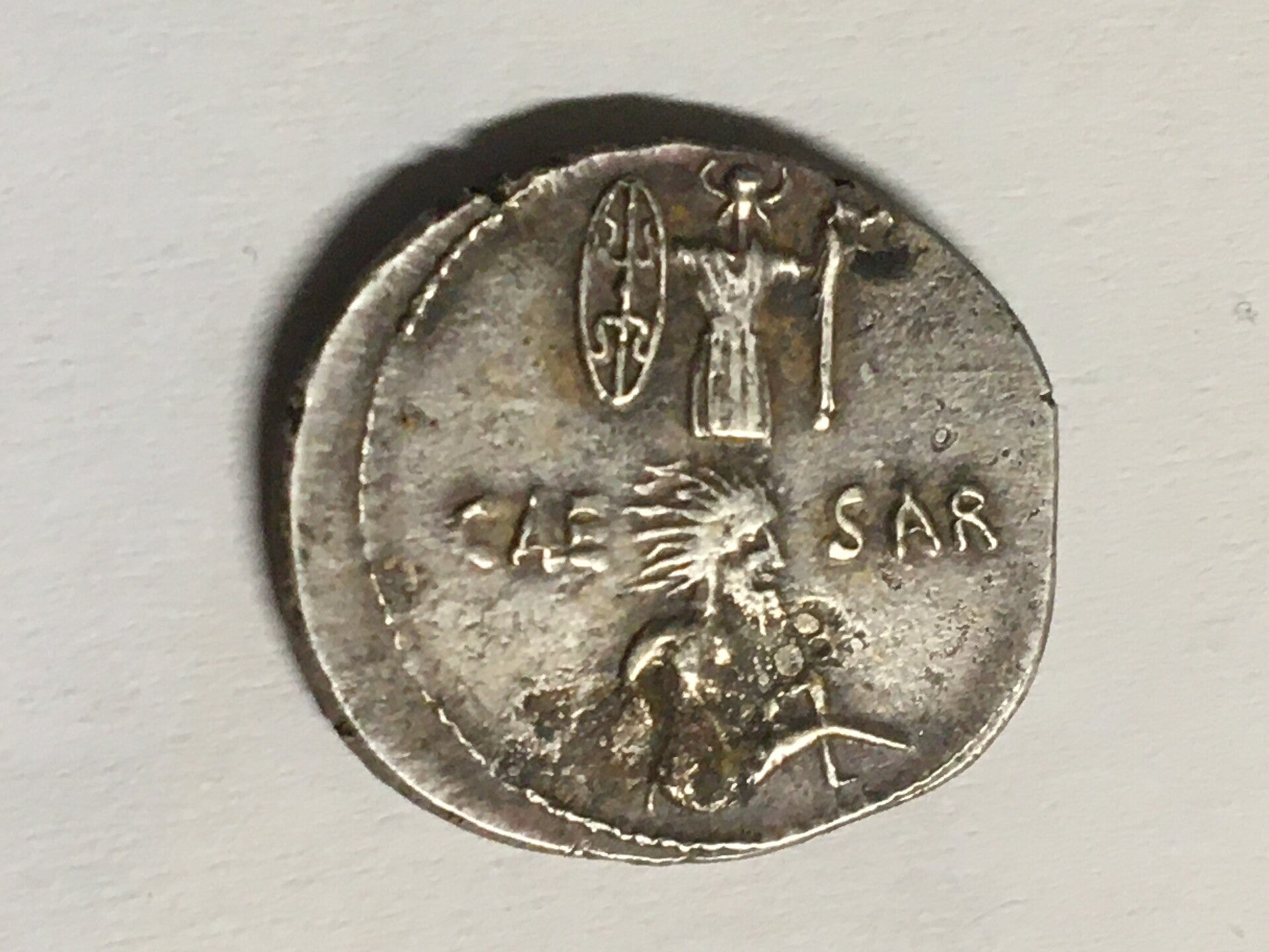 Silbermünze Julius Caesar Diktator. Wahrscheinlich eine alte museum Replik vom Anfang des 20. Jahrhunderts. Seit 1935 in Privatbesitz.